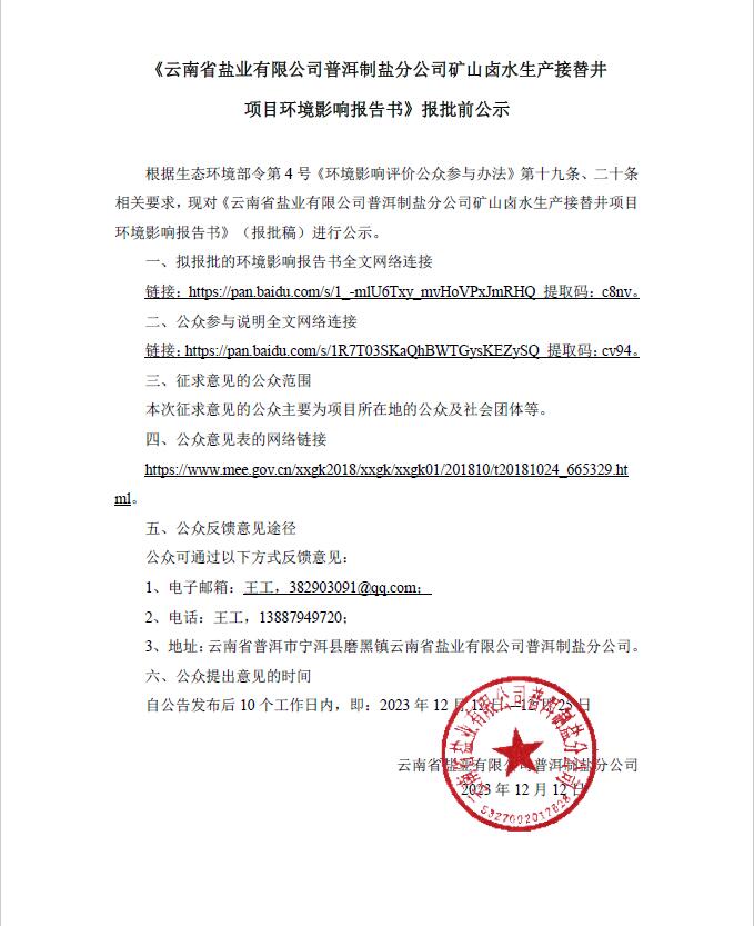 普洱制鹽接替并項目環(huán)境影響信息公開 2023-11-03 more