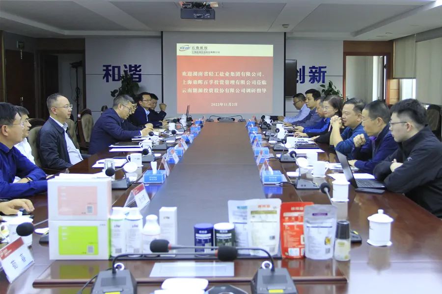 11月2日,湖南輕工鹽業(yè)集團(tuán)有限公司(以下簡稱:“湖南輕鹽”)黨委書記、董事長馮傳良,上海鼎暉百孚投資管理有限公司(以下簡稱:“上海鼎暉百孚”)高級合伙人魏斌一行7人到訪云南省鹽業(yè)有限公司(以下簡稱:“云南鹽業(yè)”),與云南能源投資股份有限公司(以下簡稱:“能投股份”)黨委書記、董事長周滿富座談交流,能投股份黨委副書記、總經(jīng)理楊建軍,副總經(jīng)理、董事會秘書李政良參加座談。